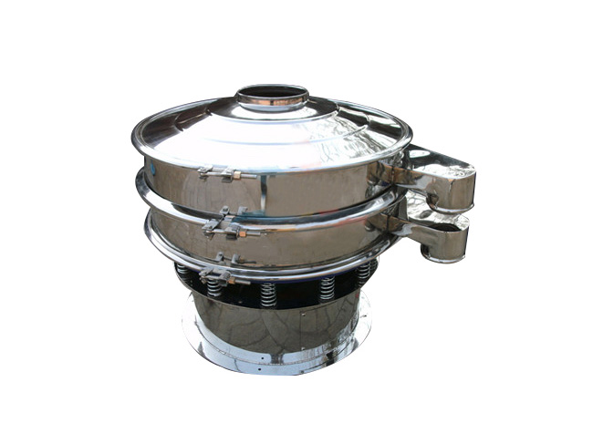 旋振篩(圓形振動篩)由立式振動電機作激振源,因為其上下端重錘安裝在發動軸兩側,使電機的旋轉運動轉變為垂直、水平、傾斜的三次元運動。  旋振篩產品特點:  設計精巧,耐用,適合任何粉類以及粘性液體的篩分。  操作簡單,換網方便,易于清洗。  篩網無阻塞,粉末無飛揚?! ‰s質以及粗料自動排出,并且可以與給料設備、輸送設備配套使用,處理量大,生產效率高?! 〕叽缧?,節省空間,易于移動?! ∫子陴B護,可單層或多層使用?! 『Y網設計合理耐用,換網只需3-5分鐘?! 『Y網可達5層,篩分出6種不同顆粒大小的物料